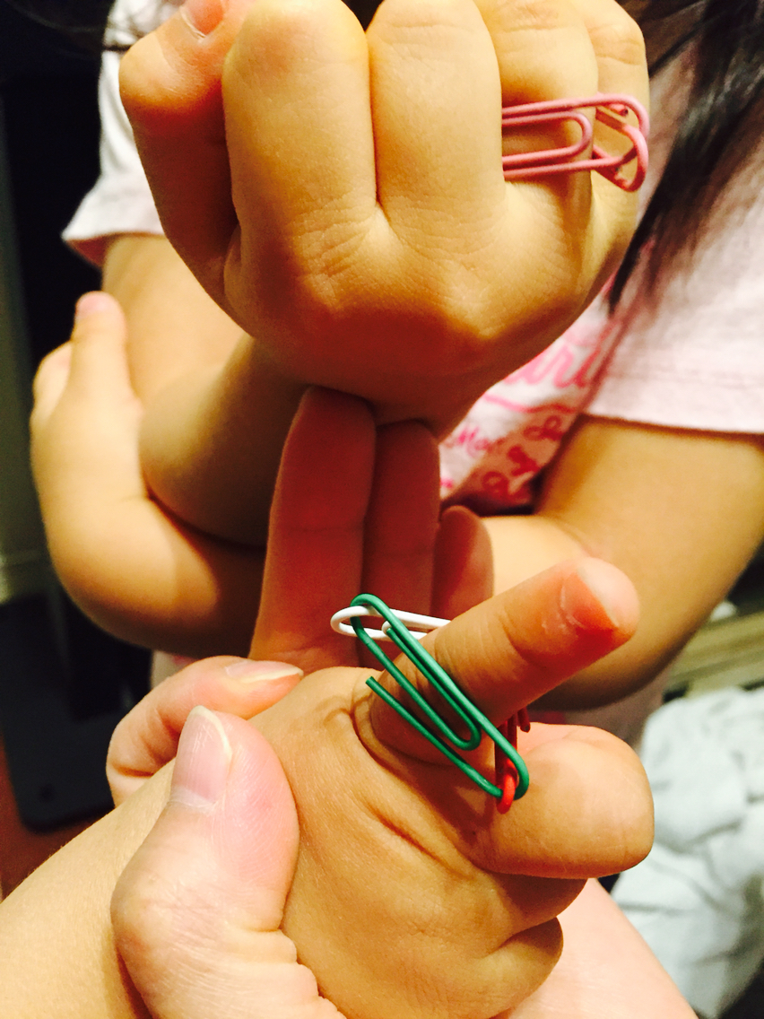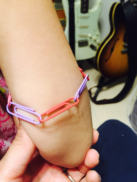 2016年06月02日 焦る夜。 仕事が終わらず、 焦って作業しています。 書斎でゲストのCDを聴いてると、 子ども達が音楽につられやってくる。 残念だったのは、途中から 頂いたCDが汚れてて 再生できない おーのー。 拭いても拭いても再生できず そして子ども達には、 仕事用クリップで指輪を作り、 ブレスレットも作り、 大満足の様子。 安上がりで助かるわ(笑)